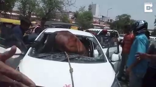 Взбесившаяся лошадь в Индии на скаку врезалась в движущийся автомобиль. Лошадь и водитель получили травмы разной степени тяжести. #авария #индия #конь
