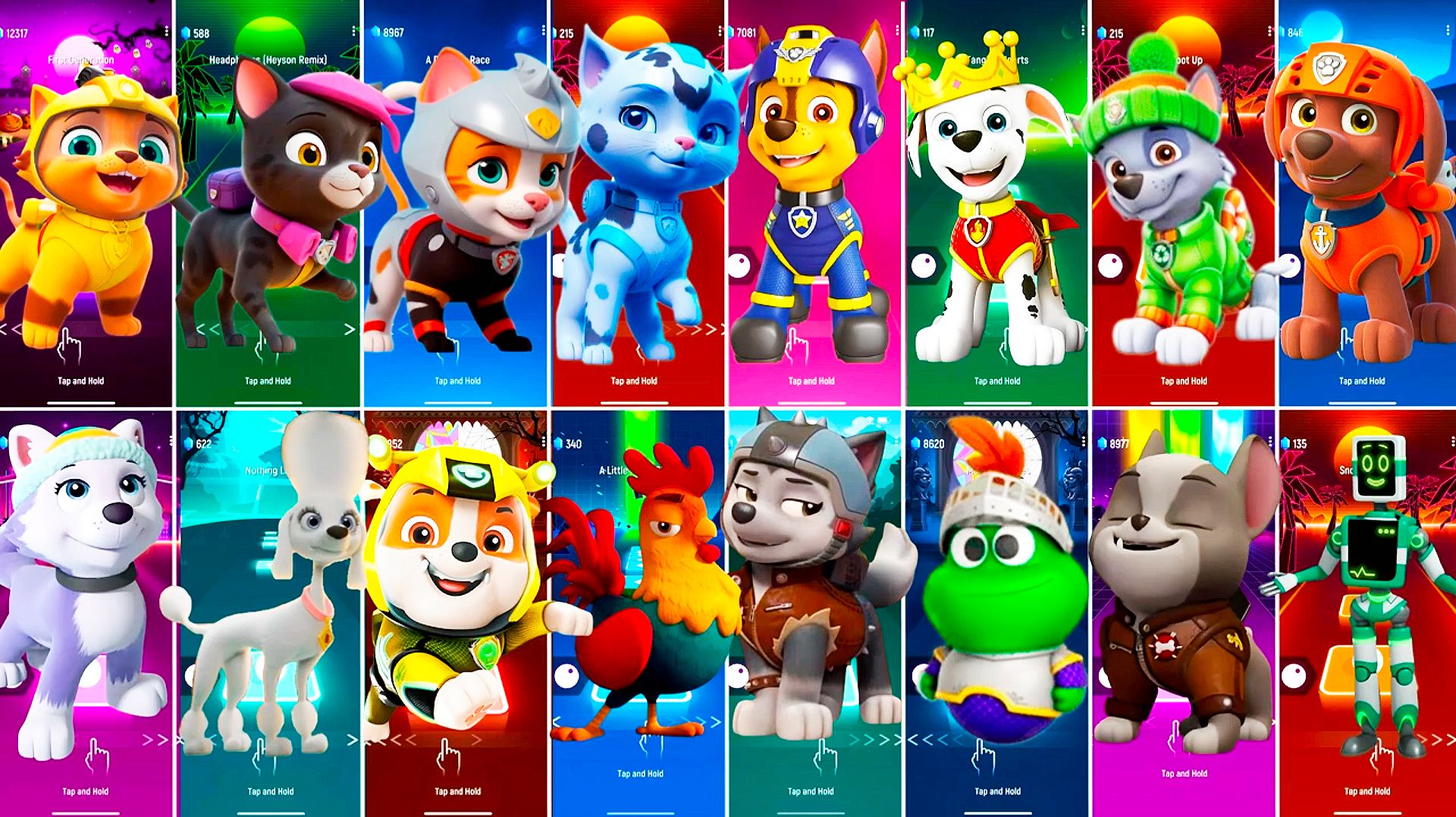 Мультики для Детей Щенячий Патруль КОТЫ Tiles Hop - ЛЕО, ГОНЩИК, МАРШАЛЛ, РОККИ, ЗУМА