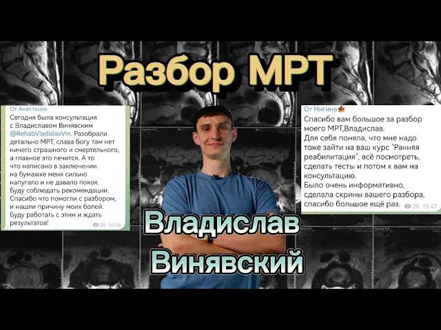 Для того чтобы стать участником бесплатного разбора МРТ снимков, вам необходимо отправить электронные копии снимков на почту vladislav.vinyavsky@yandex.ru и написать личное сообщение https://t.me/RehabVladislavVin В сообщении укажите почту, с которой были отправлены файлы, и пометьте его как "Бесплатный разбор". Пожалуйста, учтите, что разбор проводится в порядке очереди. Как отправить мрт https://youtu.be/CwhiqNbS00U?si=N736eICLyjjFlkJR 00:00 Начало эфира. 00:30 Зачитываю письмо от первого участника группы. 01:30 Начинаем разбор МРТ участника. 23:18 Участник присоединился к нашему эфиру и сам рассказывает свою историю. Параллельно задаю вопросы. 30:30 Подводим итоги по первому участнику. 32:30 Рассматриваем МРТ второго участника, он с самого начала нам рассказывает свою историю. По ходу осмотра МРТ обнаруживаем подозрение на перелом - подробнее в видео. 52:15 Вопрос от участника: "Какие характерные признаки ноцепластической боли?" 54:00 Вопрос от подписчика: Как понять, что ЛФК можно уже начинать? 56:00 Подводим итоги эфира. Modic | Модик | Спондилодисцит: симптомы, последствия и лечение https://youtu.be/sZKjMjaEbi8?si=PMYQoUgjX8Y_7LHZ Информация о курсе "Ранняя реабилитация позвоночной грыжи в поясничном отделе" https://youtu.be/H2Tp0XjfHrM?si=vNK2rSZEPasNRYeH Всем здоровья, друзья! Я - Винявский Владислав, физический реабилитолог. Занимаюсь физическим восстановлением при грыже, протрузии и других видах травм позвоночника. Нужна грамотная помощь в вашем случае? Пишите в телеграмм или в социальной сети ВКонтакте и подписывайтесь на каналы и другие источники! ►Запись на прием онлайн, любой город. ►Очно только в Москве. Контакты для записи: ►Телеграмм https://t.me/RehabVladislavVin ►ВКонтакте https://vk.com/RehabVladislavVin ►WhatsApp https://wa.me/79275077153 ►Отзывы - https://t.me/otzivzg. в телеграмм ►Отзывы YouTube - https://youtube.com/playlist?list=PLki2Nny73FgJZs7f18BWwJCJ3O4uP_90Q ►Отзывы в социальной сети ВКонтакте https://vk.com/topic-214395292_50219386 Мои социальные сети ►Телеграм - https://t.me/vinyavskyrehab каждый день новая информация и каждое воскресенье прямой эфир на разные темы! ►ВКонтакте - https://vk.com/RehabVladislavVin ►YouTube https://youtube.com/@vinyavskyrehab ►Инстаграм* https://www.instagram.com/vinyavskyhealth * - принадлежит Meta, признанной в РФ экстремистской, деятельность запрещена на территории РФ. ❤Да пребудет с вами здоровье.