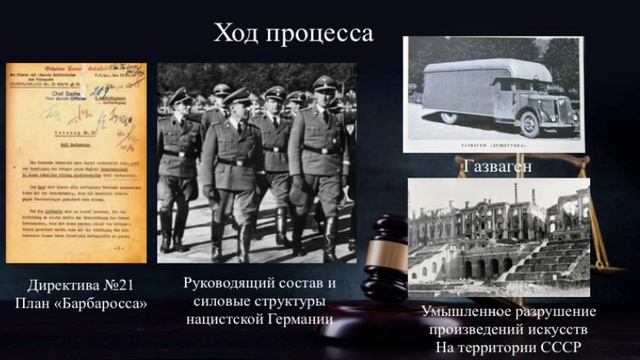 В видео представлена тема "Нюрнбергский процесс в рамках военных преступлений"