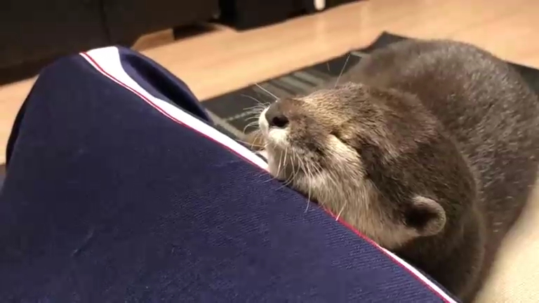 Милая выдра заснула и не хочет просыпаться от ласк хозяина. #выдра #милота #сон