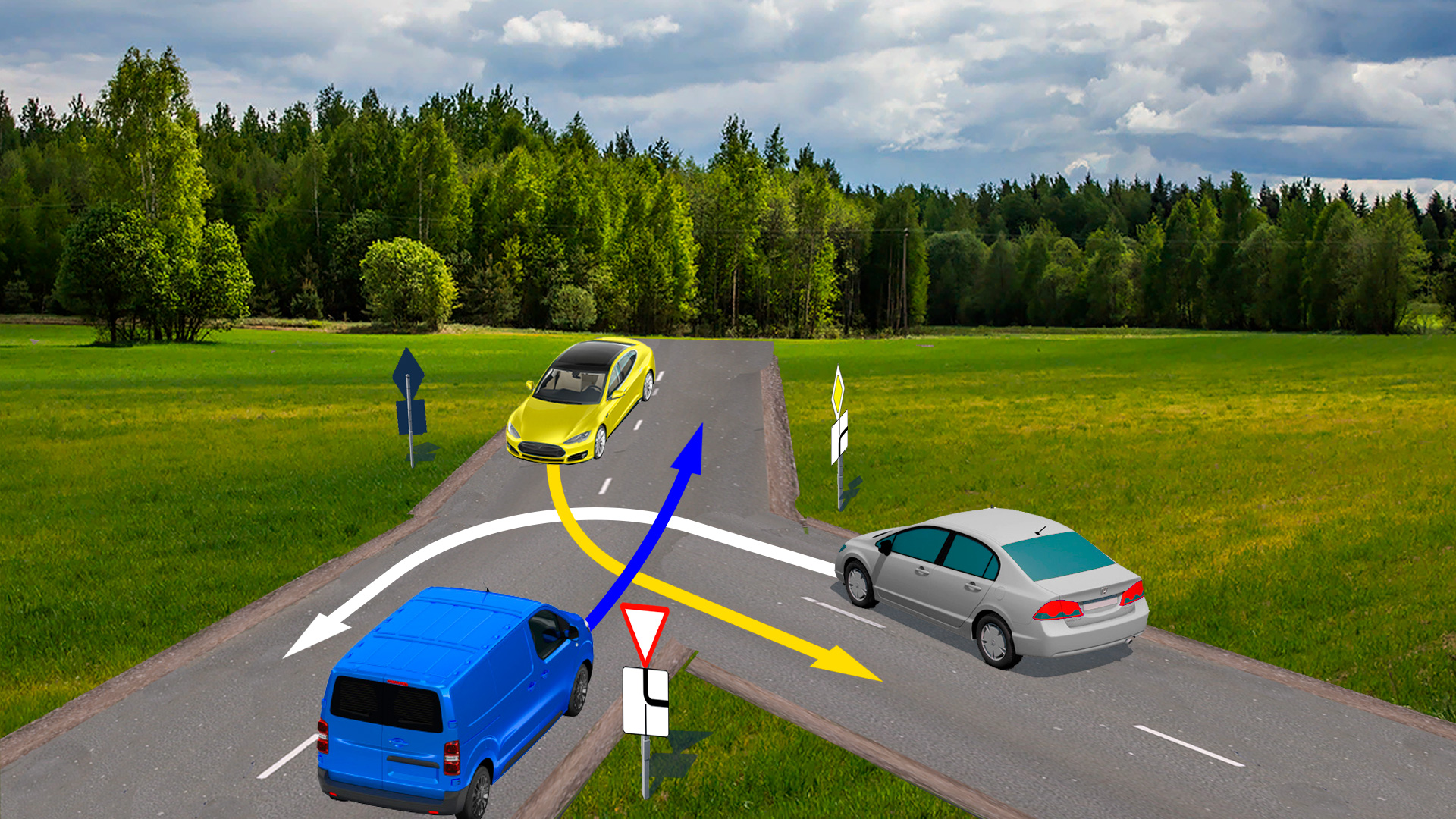 Кто из водителей проедет данный перекресток первым?