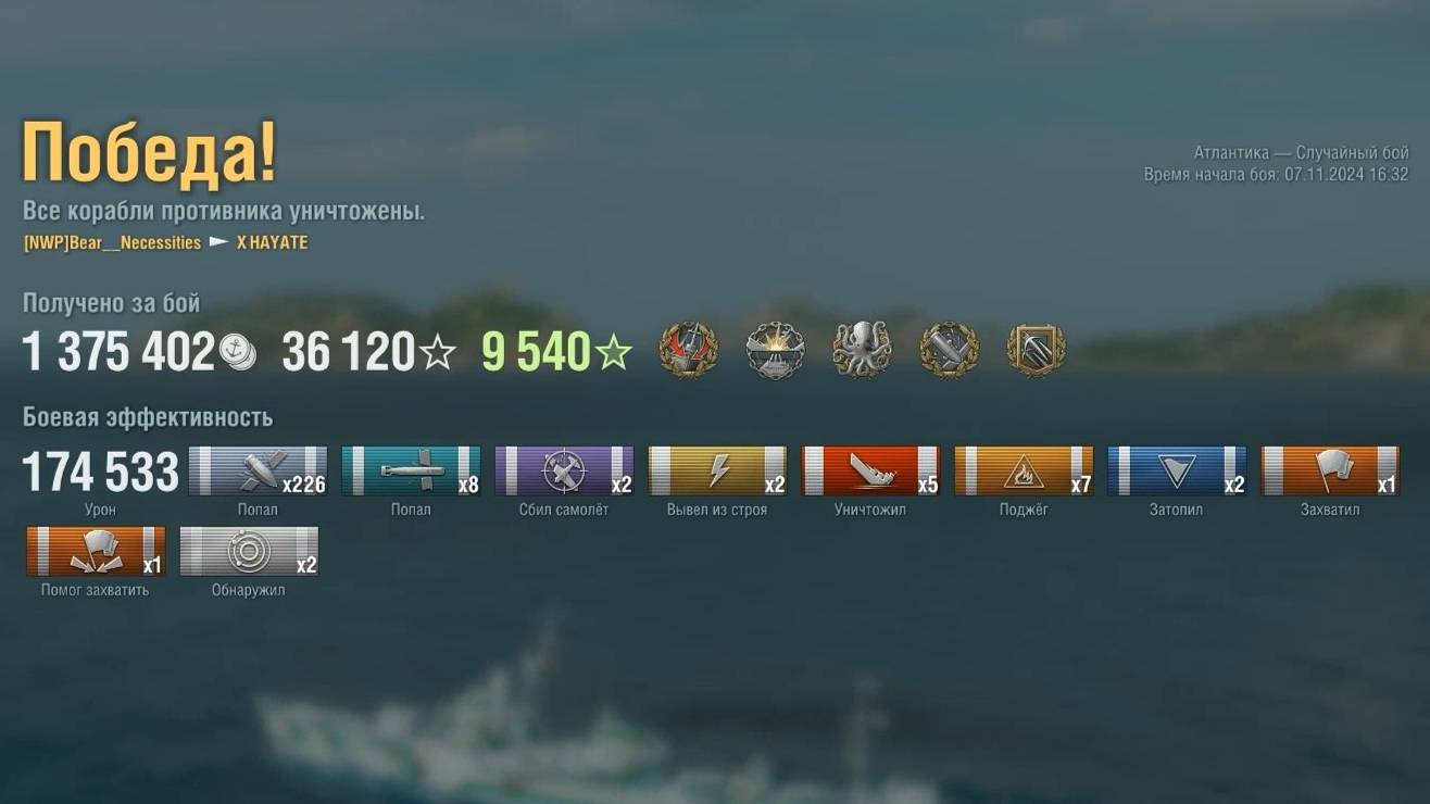 Эсминец Hayate: +174к урона 5 фрагов на карте Атлантика - World of Warships