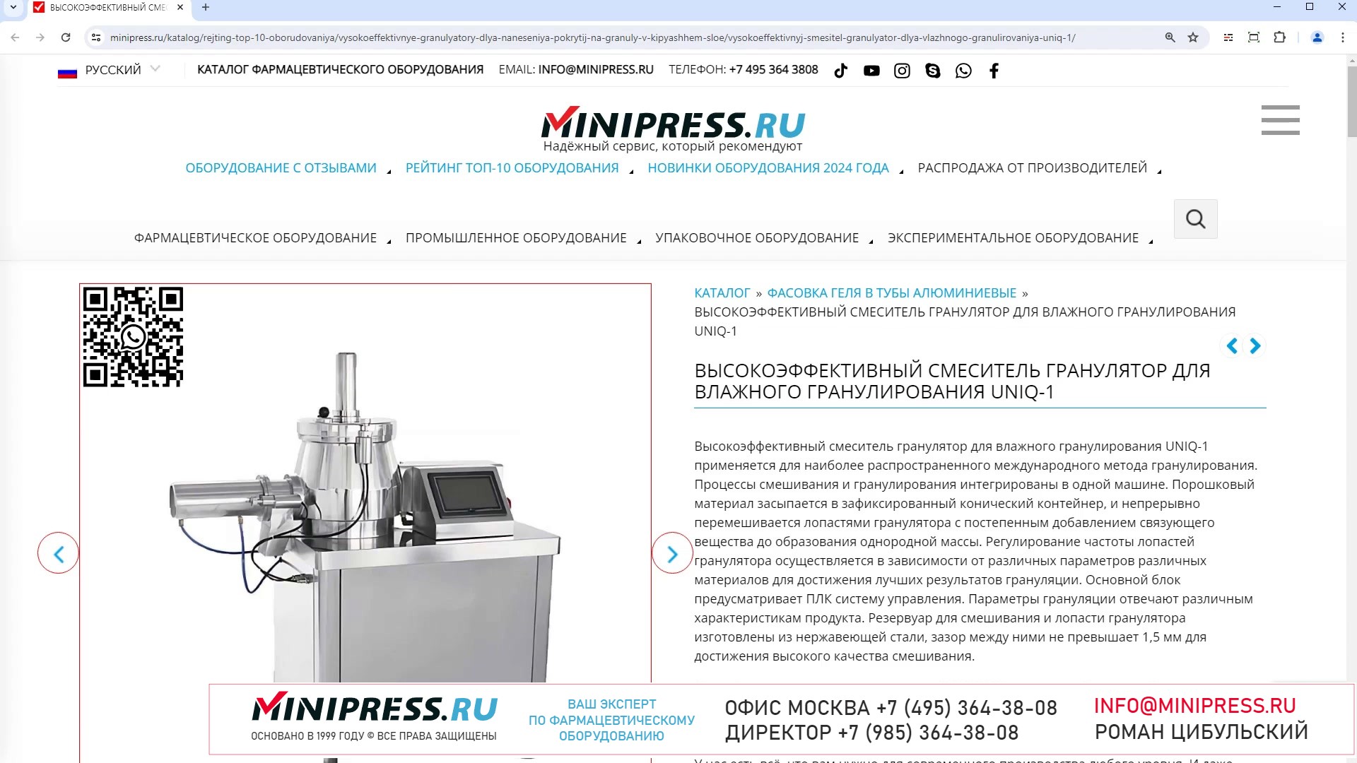 Компания MINIPRESS.RU занимается подбором и поставкой лабораторного аналитического оборудования для фармацевтических лабораторий, а именно Анализаторов Влажности,Плавления, Прозрачности, Распадаемости, Растворения, Анализаторов Состава, Таяния, Твердости, Толщины, Тягучести, и контроля качества лекарственных средств. Компания Романа Цибульского MINIPRESS.RU занимается поставкой большого ассортимента фармацевтического оборудования из Китая, Кореи, Индии, Европы и других стран. Мы выполняем работы по поиску, подбору, закупке, доставке, и таможенной очистке оборудования с доставкой в любой город России и стран СНГ. Основатель и ведущий специалист компании - Роман Цибульский. Компания MINIPRESS.RU (зарегистрированный товарный знак) основана в 2000 году. Онлайн каталог оборудования MINIPRESS.RU ежедневно посещают несколько тысяч человек. Мы развиваем крупные каналы в социальных сетях, посвященные тематике фармацевтического оборудования. Вы можете посмотреть видео ролики об оборудовании, которым мы занимаемся. Фактически у нас самый большой в России многоязычный каталог фармацевтического оборудования с фотографиями, описаниями, и что более важно с ценами и видео демонстрацией оборудования в работе. Подбор оборудования и консультации ведет сам владелец компании - Роман Цибульский. Компания имеет огромный опыт в работе с различным оборудованием, технологиями. Помогаем клиентам выбрать модель фармацевтического оборудования, которое сможет решить поставленную задачу. Наши специалисты помогают рекомендациями в решении проблем по эксплуатации оборудования. Наша компания имеет офис в г.Шанхай и несколько менеджеров, которые помогают в работе с китайскими поставщиками. Мы долго сотрудничаем и дружим с этими специалистами. Китайские поставщики ценят нас как постоянных партнеров. Роман Цибульский Директор компании Минипресс Поставка фармацевтического оборудования в Россию Пишите: info@minipress.ru Gmail: boss.minipress@gmail.com Офис в Москве +7(495)364-38-08 Мобильный +7(985)364-38-08 (WhatsApp) Каталог оборудования https://www.Minipress.ru/katalog/ МИНИПРЕСС.РУ В СОЦИАЛЬНЫХ СЕТЯХ FB https://facebook.com/roman.tsibulsky YOUTUBE https://www.youtube.com/@farmacevticheskoe_oborudovanie INSTAGRAM https://www.instagram.com/farmacevticheskoe_oborudovanie/ #цена #модернизация #торговля #менеджер #таблетка #оболочка #блистер #продажи #пылесос #сортировка