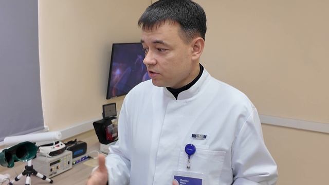 Операционный блок, оборудованный дневной стационар. Иван Луцкан рассказал, что здесь все новое: операционные столы, комбайны, офтальмокомбайн. Имеется даже две отдельные операционки: хирургия катаракты и глаукомная операционная. Все суперновое. Сколько в сумме все стоило, Иван ответить затруднился. Один из лучших микроскопов стоил 22 млн.рублей, комбайн 12 млн.рублей, томограф 18 млн.рублей, лазер с интеллектуальными функциями 20 млн.рублей. В общем, на оборудование вложились. В Кабинете аппаратного лечения все отечественное, а микроскопы и витриокомбайны импортные. Ожидание операции сократили до минимума. Из района человек приезжает и может попасть в течение недели. Делают и выездные операции. Увеличили интенсивность и географию операций.
