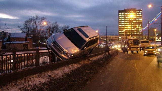 Машина слетает с моста
