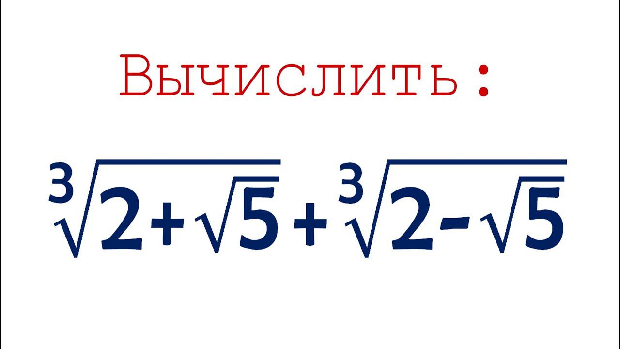 Найдите значение выражения ➜ ∛(2+√5) +∛(2-√5). Предыдущее видео: https://youtu.be/E1I7qpcb_Rg Valery Volkov https://www.youtube.com/valeryvolkov @arinablog наш семейный канал https://www.youtube.com/channel/UCktJn2SW0NzKaLkdfsYqnrg Почта: uroki64@mail.ru