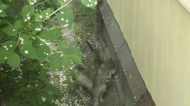Дача. Внимательная мама-кошка с непоседливыми котятами. Первый выход. Июнь 2019. Выжили, выросли.