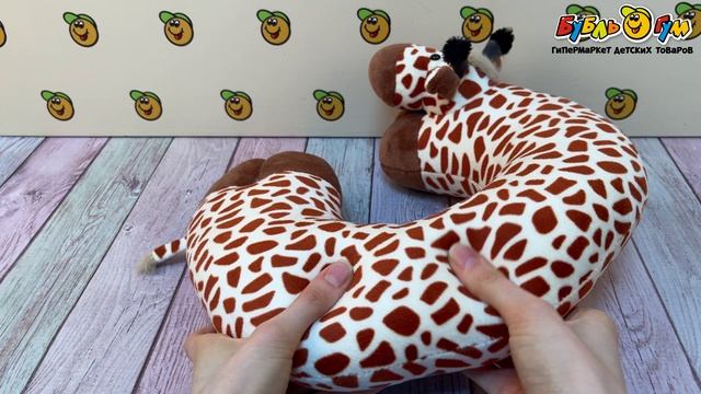 347629 Подушка дорожная Lanson goods Жираф с пятнистым принтом бежево-коричневый 30см