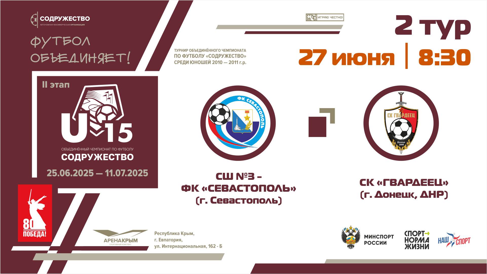 2 ТУР | U-15 | СШ №3-ФК "Севастополь" (г. Севастополь) - СК "Гвардеец" (г. Донецк, ДНР)
