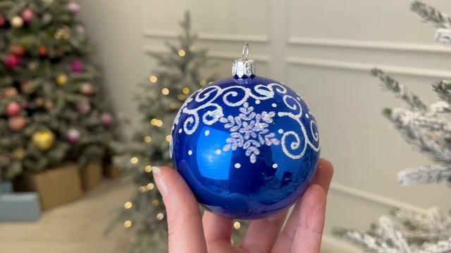Набор елочных игрушек СУВЕНИРНЫЙ синий с белым, верхушка+4х62 мм+4х75 мм, С829-бел-син
