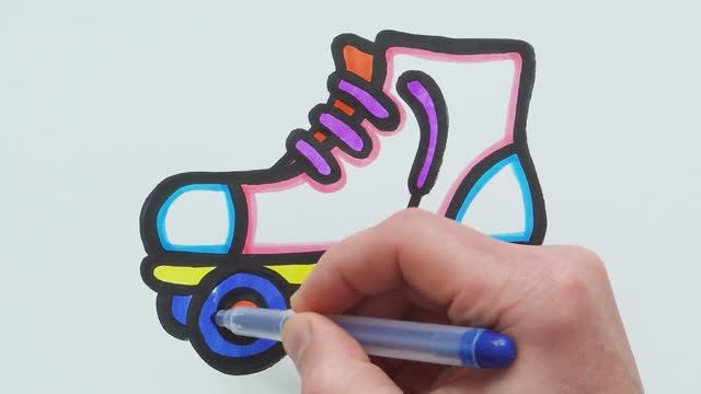 Роликовые коньки -раскраска для детей и малышей! Как рисовать, основы рисования красками!