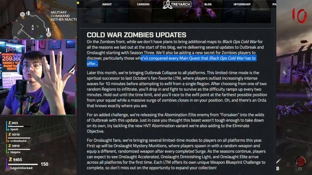 Cold War Zombies YEAR 2 MASSIVE Update confirmed. This update is added in SUPER EASTER EGG into Cold War Zombies and so much more DLC Content. Vanguard Zombies is also getting a massive update with a ROUND-BASED MAP! All this in more coming to zombies in 2022 soon :) 📱DISCORD https://discord.gg/3yW5n8EY3m 📱 🍌MERCH: https://unlockedstore-shop.fourthwall.com 🍌 🐦Twitter: https://twitter.com/Legounlocked 🐦 💎Facebook: https://www.facebook.com/gaming/LegoUnlocked 💎 🩸 More: https://www.youtube.com/channel/UCDgGg_FCzNIDPUu517_Dt3Q 🩸 💜Twitch: http://www.twitch.tv/legounlocked 💜 🍌Join this channel to get access to perks:🍌 https://www.youtube.com/channel/UCJffBkLaEjsL_f21kT_5CKg/join ✅BLOGPOST / PATCH NOTES✅ https://www.treyarch.com/game-intel/2022/04/Treyarch_Content_in_2022 ✅ Setup: (Paid links) ✅ MAIN MONITOR: https://amzn.to/3aakXns MAIN MONITOR #2: https://amzn.to/343mx6Z SIDE MONITORS: https://amzn.to/3oN4eLl MONITOR MOUNT: https://amzn.to/378eh7y STREAM DECK: https://amzn.to/3gKSYMz CHAIR MOD: https://amzn.to/37XfnCi ROUTER: https://amzn.to/38aH0bp PHONE: https://amzn.to/3neLvYz MIC: https://amzn.to/37eGdXH PC RGB FANS: https://amzn.to/3ncofKT MIC STAND: https://amzn.to/2KhOK2G GPU: https://amzn.to/3qNaB2X HEADSET: https://amzn.to/2W33PYR CPU: https://amzn.to/2KcntPk DESK: https://amzn.to/3a39Nks (No longer make my desk but this is pretty close) MOUSE PAD: https://amzn.to/2KhRRro RAM: https://amzn.to/381uiM2 LAPTOP: https://amzn.to/37awTUI PC CABLES: https://amzn.to/378I4Nj WEBCAM: https://amzn.to/3mf4oZX BACKGROUND LIGHTS: https://amzn.to/3oCJh5w BOOT DRIVE: https://amzn.to/376kNvE SSD: https://amzn.to/3ma2g5O CAPTURE CARD: https://amzn.to/344v61m COLD WAR: https://amzn.to/37aeSFR MOUSE: https://amzn.to/3a37LRm KEYBOARD: https://amzn.to/2JNszlr 💜ULTIMATE DARK AETHER GUIDE💜 https://www.youtube.com/watch?v=WJub9cgz6V8&t 💜ULTIMATE DARK AETHER GUIDE💜 https://www.youtube.com/watch?v=cd_G9O13R7k&t 💜CRYSTAL FARM GUIDE💜 https://www.youtube.com/watch?v=gwQ9FaaLz2Q&t