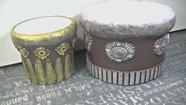 2 Кашпо из обычных пластиковых ведёрок .Идея из пластиковых ведер .Кашпо декорированы массой из яичных лотков .Делается масса так , яичные лотки заливаю кипятком до полного остывания , затем провожу через кухонный комбайн ,слаживаю в банку и когда мне надо беру замешиваю с клеем пва , маслом в эту массу добавляла 1 ложку муки , ничего мука не испортила .Кашпо из ведер и папье-маше получились прочные , красивые . Мне идея понравилась . Всем творческих успехов .
