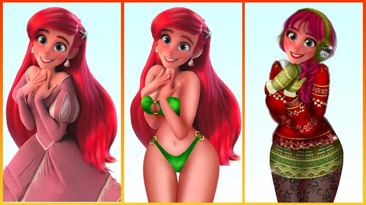 Из русалки в принцессу: Эволюция стиля Ариэль - Раскраска для детей