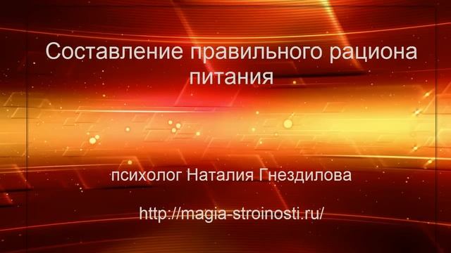 Умеете ли вы правильно составлять рацион питания? Сколько нужно потреблять белков, жиров, углеводов? Как рассчитать суточную норму БЖУ и килокалорий? Как нужно правильно составлять рацион? На этот и другие вопросы ответит Наталия Гнездилова – психолог, специалист по комфортному похудению и эмоциональному ожирению. Много статей, техник и медитаций направленных на снижение веса без диет и тренировок на сайте http://magia-stroinosti.ru/ =================================================== Вас интересует снижение веса? Вам нужна поддержка психолога? Если да, то получите бесплатный психологический курс по снижению веса - толковый, без воды, только факты и причины возникновения лишних килограммов http://magia-stroinosti.ru/wppage/novy-j-put-k-strojnosti-2-2/