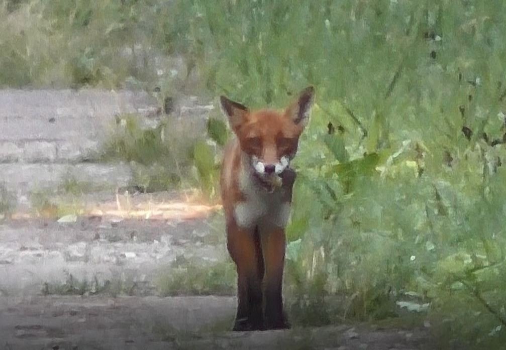 Лисица на дороге, 23.07.2022, Вяжищи, Новгородская область