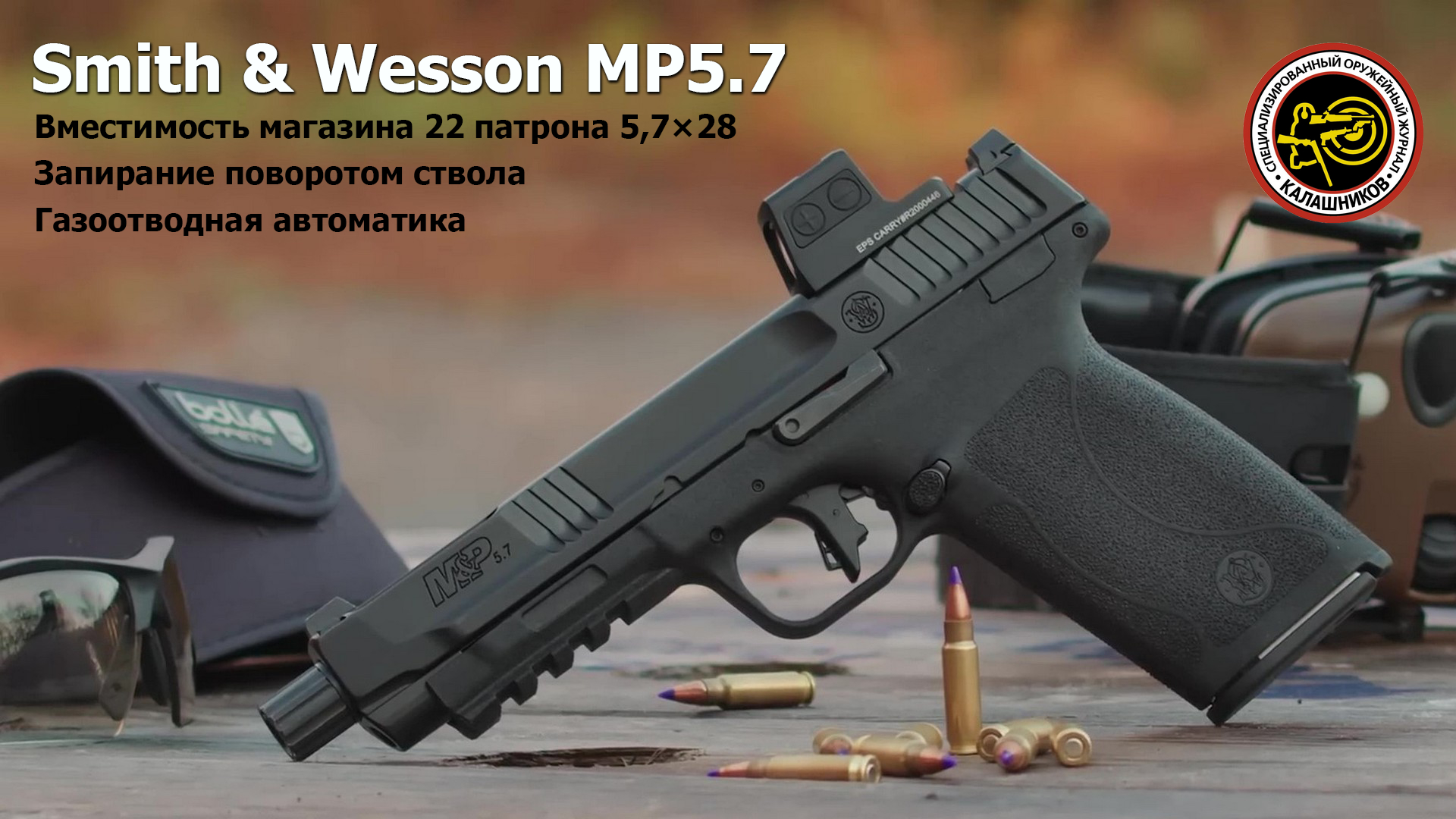 Автоматика пистолета Smith & Wesson MP5.7 работает за счёт отвода пороховых газов, запирание осуществляется поворотом ствола, а магазин вмещает 22 патрона калибра 5,7×28.