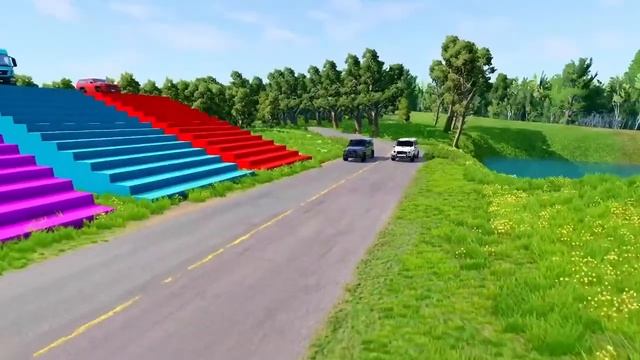 Double Flatbed Trailer Truck vs Speed bumps | Train vs Cars | Tractor vs Train | BeamNG Drive