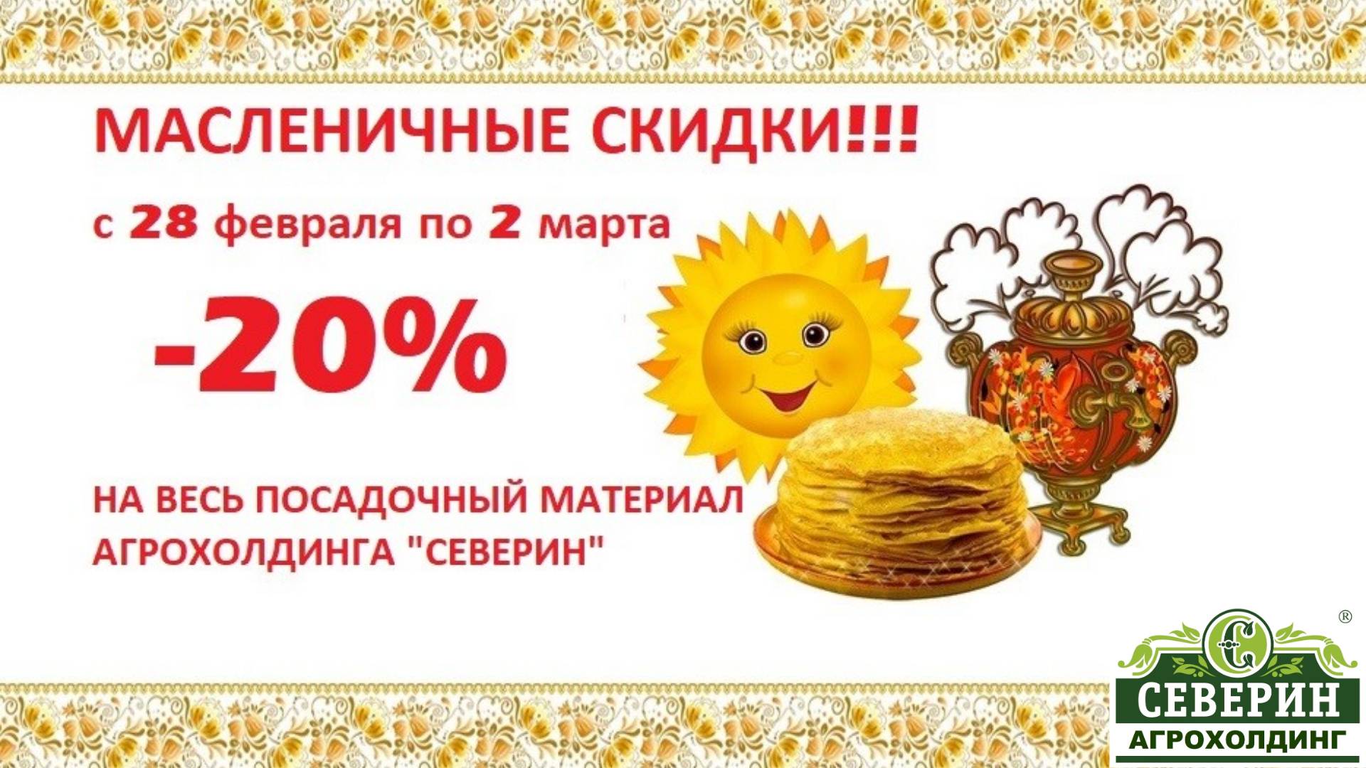 МАСЛЕНИЦА В САМОМ РАЗГАРЕ!!! 🥞🍯🎉 С каждым днем масленичной недели связаны свои обряды и традиции. 🧸🪆🥞 Но самое главное на Масленицу принято не только печь блины и угощать друг друга, но и дарить подарки. 🎁🎁🎁 Садовый Центр «СЕВЕРИН» дарит 🎈👩🌾 всем покупателям -20% на весь ПОСАДОЧНЫЙ МАТЕРИАЛ!!! 🌱🌿🌷🪴 ТОЛЬКО 3 ДНЯ - с 28 февраля по 2 марта саженцы собственного производства АГРОХОЛДИНГА "СЕВЕРИН" со скидкой -20%! ЖДЕМ ВСЕХ по адресу: г. Тула, Алексинское шоссе, 34 с 9 до 19 часов 🏃♀️🏃♂️🏃