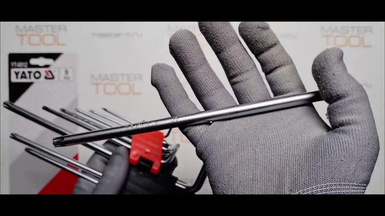 Распаковка- Шестигранники YATO длинные ТОRХ Т10-Т50, CrV, 9 шт., 52-55 HRC, YT-0512 Ссылка на товар в нашем магазине на Ozon https://ozon.ru/t/z34RN4b Ссылка на товар в нашем магазине на Wildberries https://www.wildberries.ru/catalog/53652624/detail.aspx Все товары можно купить по ссылке на Ozon https://www.ozon.ru/seller/yato-tools-67747/?miniapp=seller_67747&from=share_android на Wildberries https://www.wildberries.ru/seller/250584 -Набор торцевых ключей CV 9 предметов TORX Т10-Т50 удлинённые (холдер). -Набор состоит из 9 имбусовых ключей TORX используется для установки или снятия крепежа с шестигранным шлицем. -Ключи представляют собой металлические стержни Г-образной формы и шестигранного сечения. -Преимуществом шестигранного ключа является возможность не вынимать наконечник из винта при полном обороте. -Ключи позволяют прилагать высокие крутящие моменты при использовании длинной части инструмента в качестве рукоятки. -Ключи изготовлены из высококачественной хром-ванадиевой стали CrV 6150, по технологии, позволяющей применять высокие нагрузки. -Для удобства использования и транспортировки набор упакован в пластиковую кассету. -В набор входят ключи: T1O, T15, T2O, T25, T27, T30, T40, T45, T50.