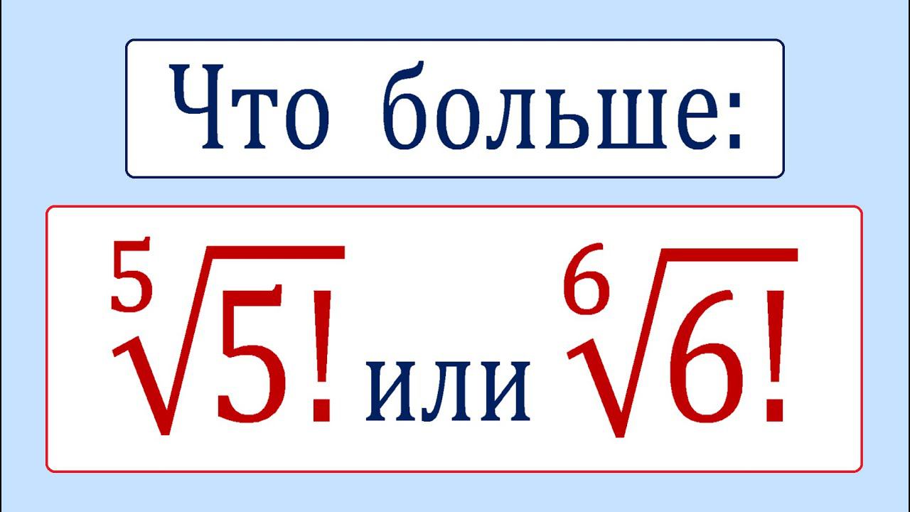 Сравните числа ➜ (5!)^(1/5) и (6!)^(1/6). Предыдущее видео: https://youtu.be/5EDsMQSvU90 Valery Volkov https://www.youtube.com/valeryvolkov @arinablog наш семейный канал https://www.youtube.com/channel/UCktJn2SW0NzKaLkdfsYqnrg Почта: uroki64@mail.ru