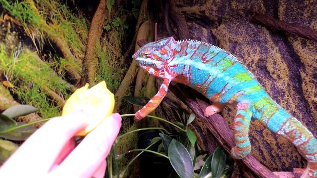 Видео снято для людей утверждающих ,что пантеровые хамелеоны не едят фрукты.На видео прекрасно видно ,что хамелеон есть фрукты с удовольствием.Фрукты и овощи нужны для пополнения витаминами организма и для улучшения пищеварения.Если вы не согласны с моим убеждением -пишите в комментариях обоснованные факты,научные труды,доклады,книги где указанно обратное(желательно зарубежные).Пишите едят ли фрукты и овощи ваши хамелеоны.Многие люди и профессора спорят о пользе вегетарианства,в то время как одни люди чувствуют себя отлично поедая либо только мясо либо только фрукты либо комбинированно .Так же и животные,выбирают для себя наиболее полезные продукты,чувствуя ,что им подходит а что нет.При условии ,что насильно их ни кто ни чем не кормит и предоставляет право выбора.