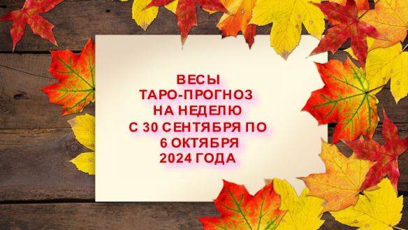 ВЕСЫ ТАРО-ПРОГНОЗ НА НЕДЕЛЮ С 30 СЕНТЯБРЯ ПО 6 ОКТЯБРЯ 2024 ГОДА