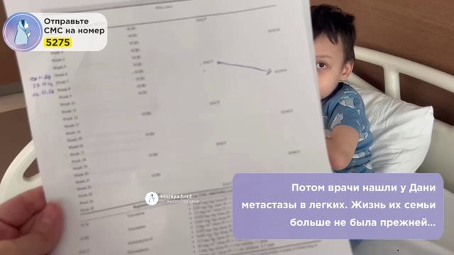 У мамы Дани нет денег, чтобы победить мучителя-Рака! Время Дани тает! Помогите спасти! Маленького Даню хочет лишить жизни Рак. Эта болезнь превратила его детство в мучения! Мальчику очень страшно. 2 года назад Данюша простыл, а потом случайно упал на копчик. На месте падения вылезла огромная шишка. В больнице сказали, что это онкология. Потом врачи нашли у Дани метастазы в лёгких. Жизнь их семьи больше не была прежней. Малыш уже перенёс несколько сложнейших операций, он долго не мог ходить. Сейчас его спасают врачи из больницы Медикал Парк. Предстоит долгое лечение, и нужна Ваша помощь в его оплате! Даниель Миллер Диагноз: Экстраренальная опухоль Вильмса, 3 стадия. РАК Необходимо: Лечение в клинике MedicalPark (Турция) Сумма сбора: 1 440 000 рублей Страница Дани на нашем сайте: https://kseniya.fund/komu-pomoch/daniel-miller/?FAND=rutube Детство крохи Даниеля длилось 3 года, но Рак его оборвал! Ребёнку диагностировали метастазы в легких (9 метастаз) и 4 стадию онкологии. Состояние Даниеля очень быстро стало критическим, опухоль заполнила всё забрюшинное пространство, сдавила все органы, и был риск того, что откажут почки. Он уже перенёс 2 тяжёлые операции, дважды ему удаляли опухоль и метастазы. Сейчас надо проводить срочное лечение с химио и лучевой терапиями. Мама растит Данечку совсем одна. Нужна ваша поддержка, чтобы выжить! "Вся борьба с Раком просто невыносима. Что он делает с моим сыночком. Препараты, уничтожая Рак, ударяют и по его организму, который так измучен и слаб! Но прервать лечение – значит отдать Даниеля на съедение Раку. Очень больно видеть, что с ним происходит. Каково ему терпеть эти тяжелейшие муки физически и эмоционально? Ощущаю себя бессильной! Чувствую его боль. Жаль, что не могу забрать себе. Пожалуйста, помогите мне спасти сына!". Мама Даниеля. Мама молит всех неравнодушных помочь отобрать сына у Рака. Без вашей помощи его не спасти! Выберите удобный способ пожертвования у нас на сайте: https://kseniya.fund/komu-pomoch/daniel-miller/?FAND=rutube Отправьте СМС: - на номер 3434 со словами «Лечим Даниеля» и любой суммой. Пример: Лечим Даниеля 350; - на номер 5275 и в сообщении укажите цифрами сумму пожертвования в рублях. Пример: 350. Банковские реквизиты: Получатель платежа: Благотворительный фонд «Ксения Спасает Жизни» ИНН 7814779325 КПП 781401001 ОГРН 1207800101497 ПАО «Сбербанк» Р/с 40701810755000000688 Банк: Северо-Западный банк ПАО Сбербанк БИК: 044030653 К/с 30101810500000000653 Назначение платежа: Благотворительное пожертвование для Даниеля Миллера. #даниельмиллер #детскийрак #даня #толькоживи #сынок #vkcharity #люблю #мамасыночка #ксенияспасаетжизни
