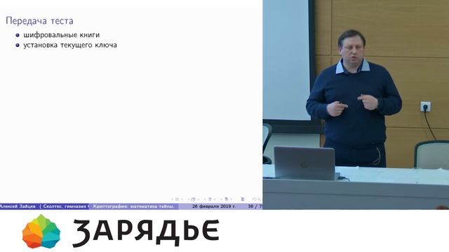 Лекция от заведующего кафедры математики Гимназии Сколково и ведущего научного сотрудника Сколтеха Алексея Зайцева о криптографии и математических тайнах.