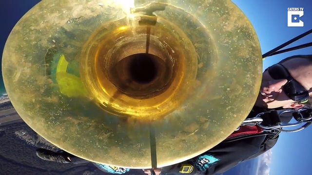 Дэнни Маллия, профессиональный музыкант, который совершил прыжок с парашютом с трубой в руках, играя множество композиций, включая "Звездные войны" – Имперский Марш, в небе над Австралией. #экстрим#парашют#труба#круто