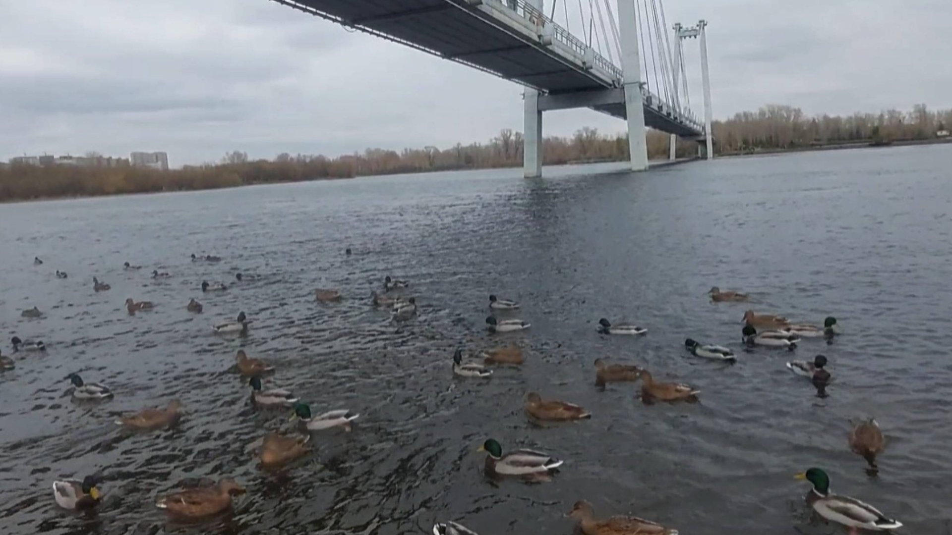 Татышев-парк. Вантовый мост .Утки.Красноярск