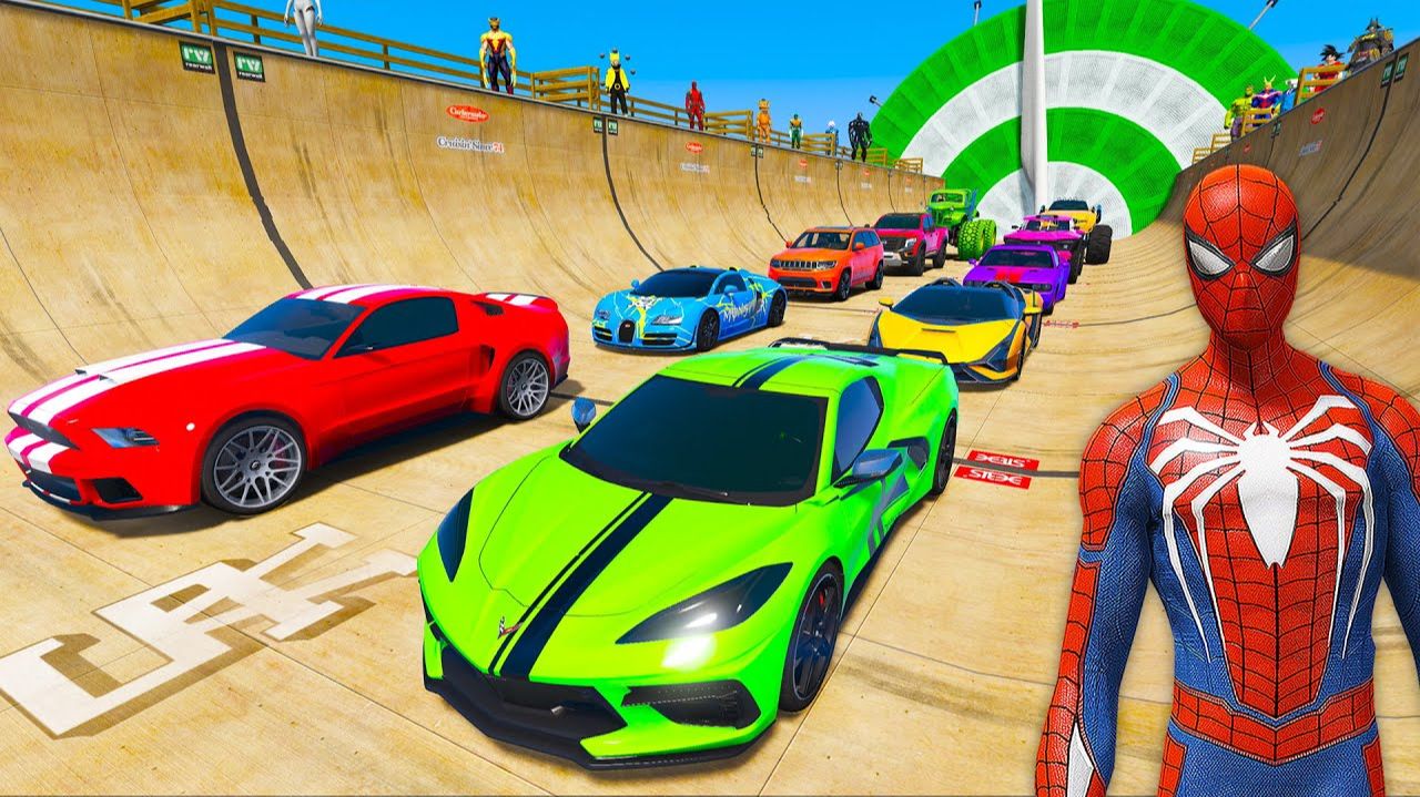 Человек-паук на машинах Супер Гонка на пустынной рампе! Супергерой Халк, Гоку - Гоночные машины.
