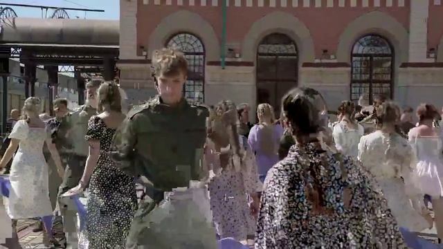 Тот самый вальс на вокзальной площади Дебальцево на фоне разбитого и вновь восстановленного здания Д