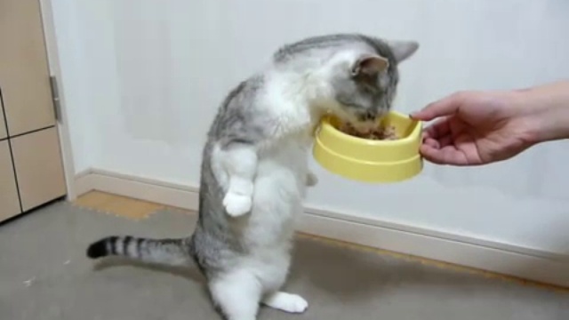 Кот ест стоя