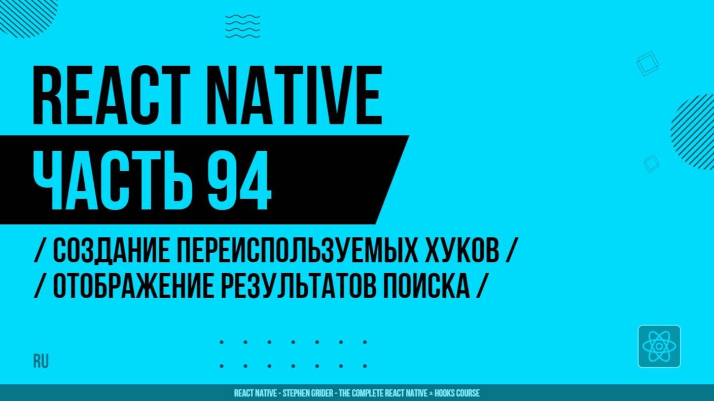 React Native - 094 - Создание переиспользуемых хуков - Отображение результатов поиска