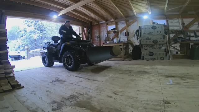 Уборка снега снегоотвалом на квадроцикле РМ 800...Покатушки по даче...