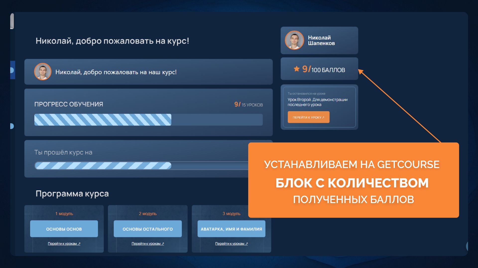 Геткурс. Блок с количеством полученных баллов, устанавливаем, настраиваем, разбираемся, как работает