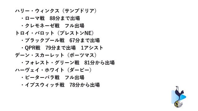 ローン選手達の報告その13です。 13ではHarry Winks, Troy Parrott, Dane Scarlett, Harvey Whiteについて話してます。 運営している人達のSNSはコチラ! 【OsakaSpurs】 Twitter:https://twitter.com/OsakaSpurs Instagram:https://www.instagram.com/osakaspurs/... 【KobeSpurs】 Twitter:https://twitter.com/Kobe_Spurs 【しゅん×2】 Twitter:https://twitter.com/SHUNSHUN21 【ふじ】 Twitter:https://twitter.com/garefuji 【ベンD】(今回不在) Twitter:https://twitter.com/SuperJan315 【クザキ】(今回不在) Twitter:https://twitter.com/dan_reyno_spurs