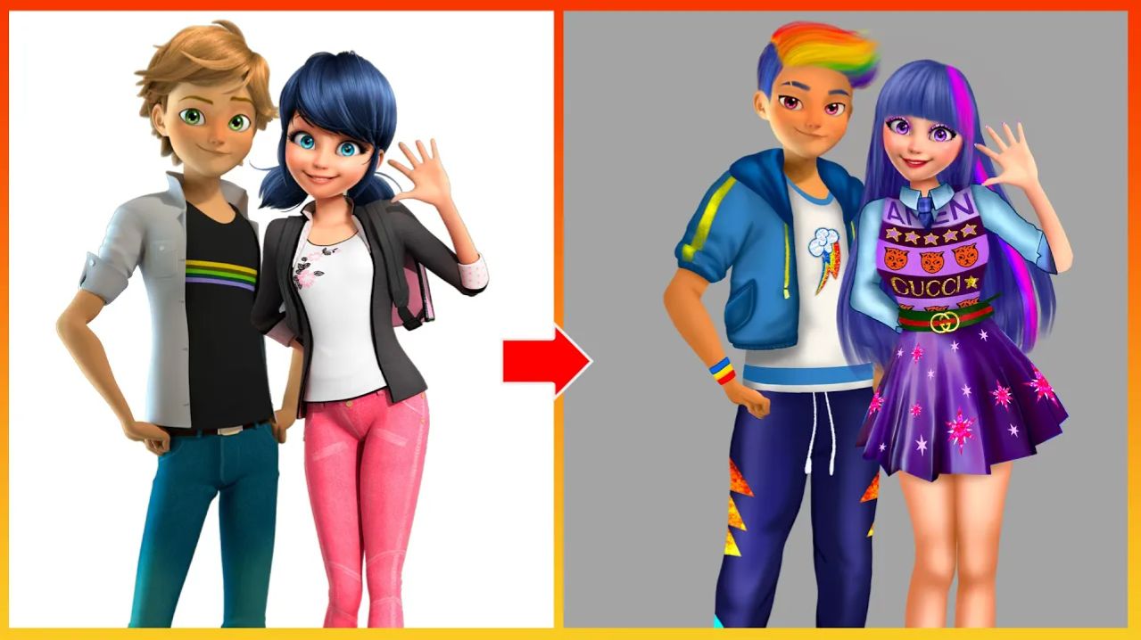 Леди Баг и Адриан в стиле My Little Pony - Раскраска для детей
