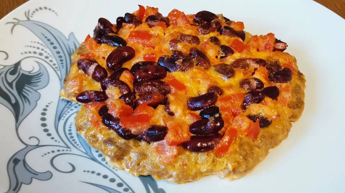 Большая мясная котлета в духовке с сыром, фасолью и томатами - простой и вкусный ужин.