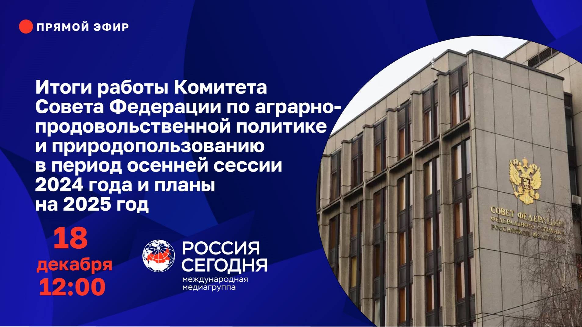 В рамках пресс-конференции речь пойдёт о мерах, направленных на обеспечение продовольственной безопасности страны, о законодательном обеспечении сферы по обращению с твёрдыми коммунальными отходами, о развитии особо охраняемых природных территорий. Также будут затронуты и другие вопросы, стоявшие на повестке заседаний Комитета в период осенней сессии.