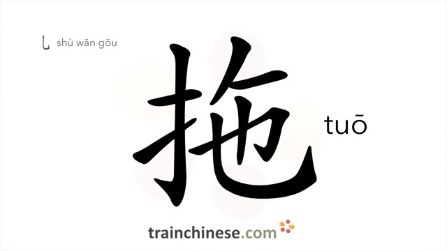 拖 (tuō) to drag; haul; delay; tow, traction