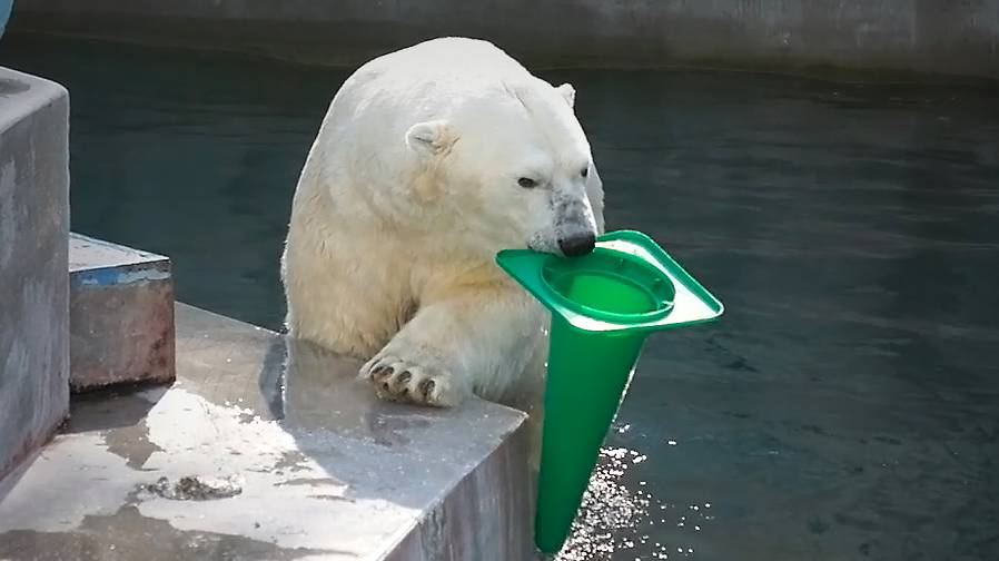Белые медведи Кай и Герда получили подарки из Японии, а следом и живую рыбу.