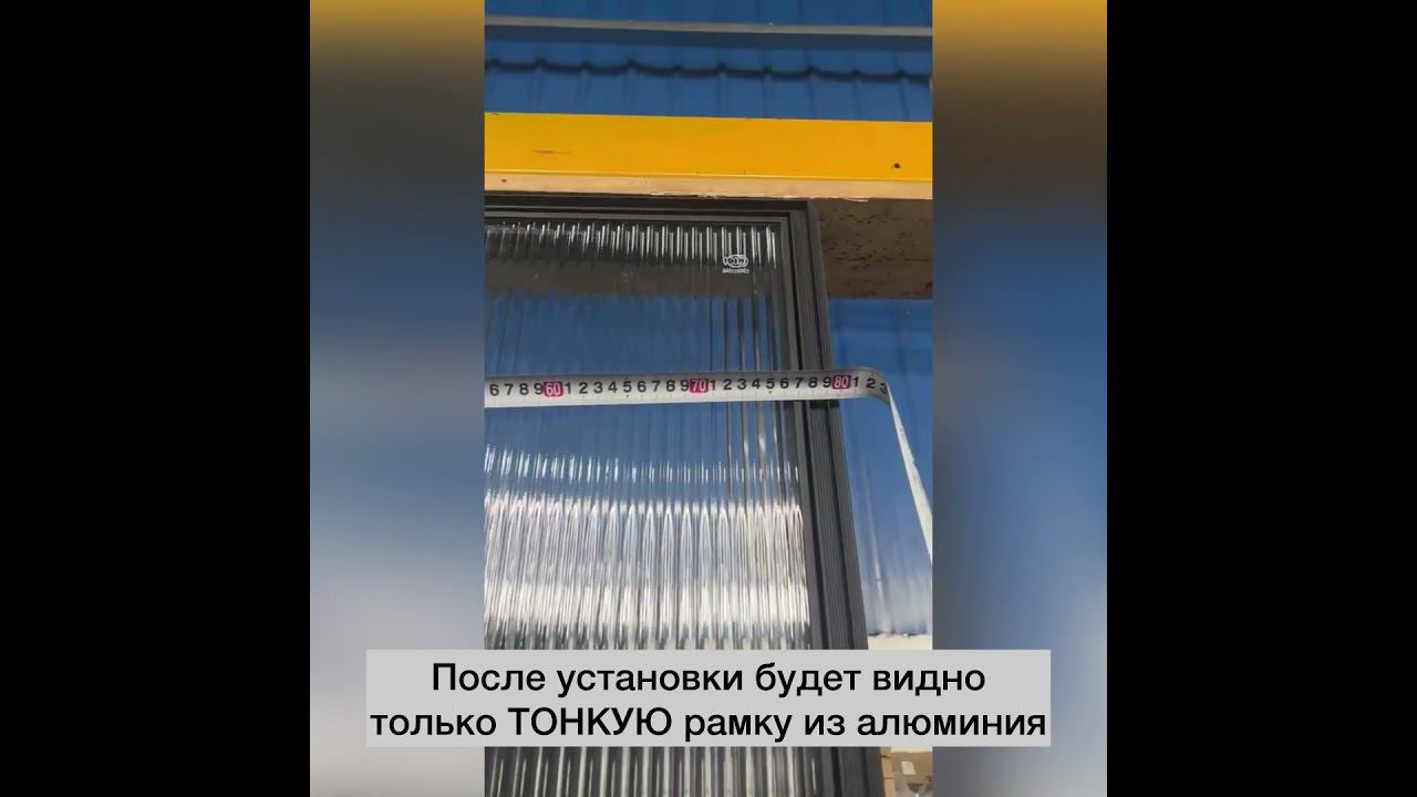 Межкомнатная дверь тонкая алюминиевая рамка 800х2000, стекло рифленное прозрачное FMD-6L-1 AL/Bl-Rc Черная. Минималистичная дверь. Дверная коробка встраивается в стену, а откосы отделываются тем же материалом, что и стена.