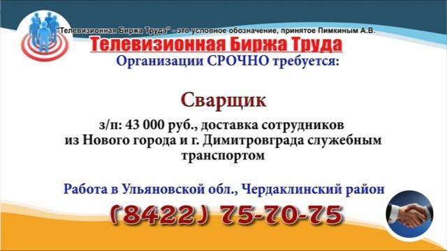 Вакансии и телефоны прямых работодателей в специализированной программе по трудоустройству "Телевизионная Биржа Труда" - г.Ульяновск
