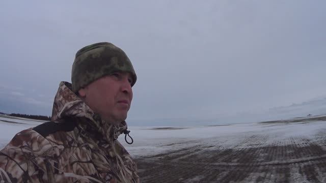 Отселяем селезня от подсадных уток, выходим на озимое поле на разведку в поиске весеннего гуся.