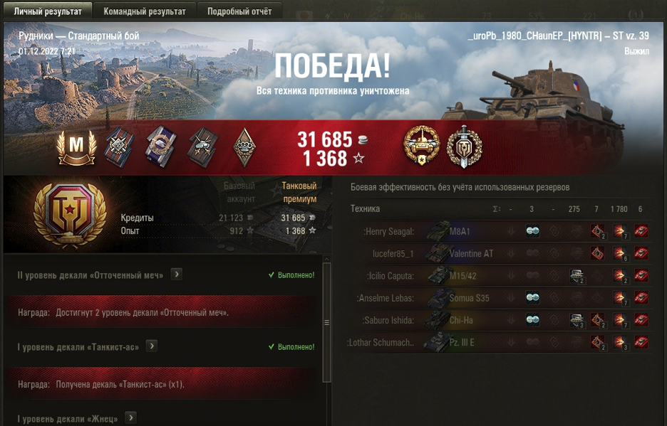 РУДНИКИ МАСТЕР на ST vz. 39 ОПЫТ: 912 УРОН: 1780 медали ВОИН КАЛИБР.
