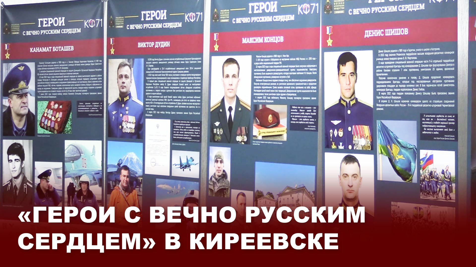 «Герои с вечно русским сердцем»- так называется новая выставка, открывшаяся в Киреевском краеведческом музее им. А.Н. Куприна. Она создана российским военно- историческим обществом, при поддержке Министерства обороны РФ, и рассказывает о героях разных лет. Первыми посетителями выставки стали учащиеся Киреевского центра образования №1, представители совета ветеранов комсомола и районного совета ветеранов войны, труда, вооружённых сил и правоохранительных органов. Продолжение темы в нашем сюжете.