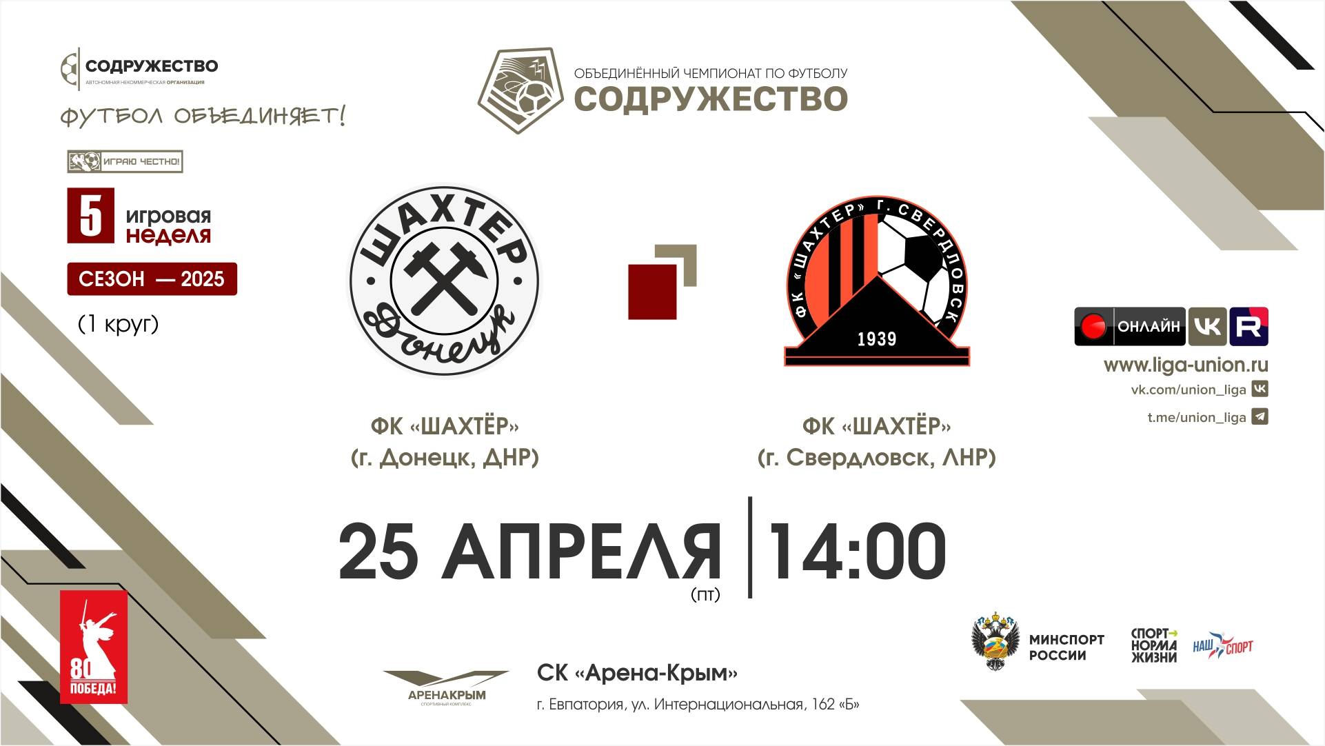 5 неделя (2025) | ФК «Шахтёр» (Донецк, ДНР) – ФК «Шахтёр» (Свердловск, ЛНР) | 25.04.2025